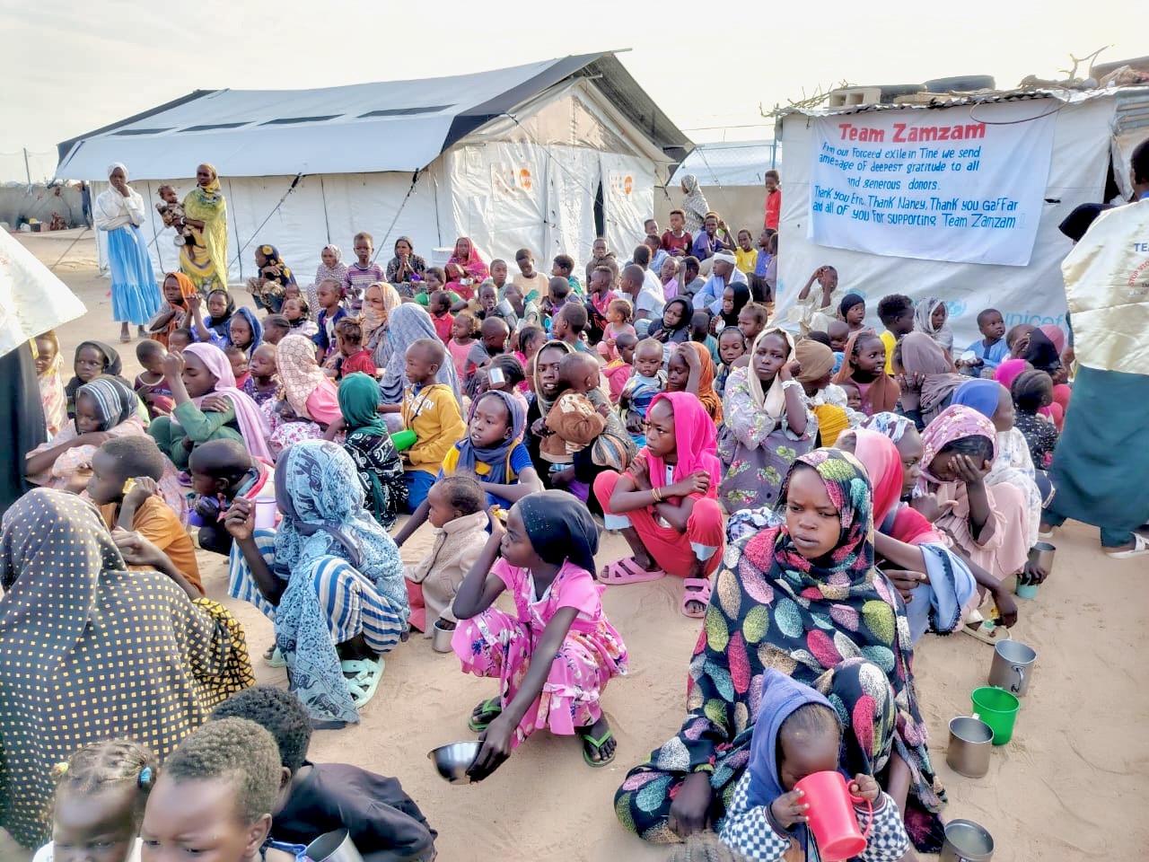 As people continue to flee from the hell of besieged El Fasher and the fighting in areas surrounding Tina, Team Zamzam continues to provide them with food, water, and critical counselling for victims of sexual violence. With our modest budget, we have managed to feed more than 11,000 people, mostly young children, women, and disabled people. Those fed were among the most impoverished and are typically suffering from severe malnutrition; many are victims of diseases related to severe malnutrition.