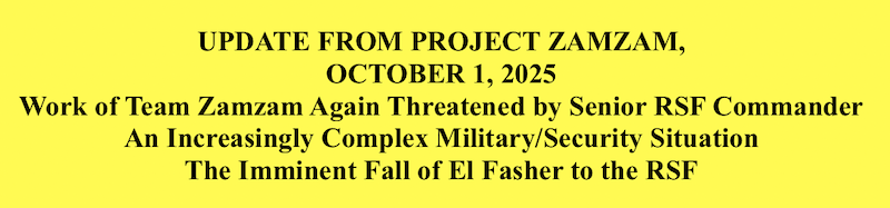 Supporting Team Zamzam is supporting precisely the critical gaps in international humanitarian assistance in the area: providing psychosocial counseling to the huge numbers of women and girls who have been traumatized by ongoing—indeed, accelerating—sexual violence in Darfur; providing food to the most malnourished, especially children; providing medicine and hygienic supplies to those most in need. Team Zamzam has never been in a better position to utilize all the support we can give them. But funds have begun to run low as contributions have slowed. There are still a number of generous contributions, but without a substantial increase in funds, it will be impossible for me to continue supporting Project Zamzam in the way I would wish. Cuts in funds for food will need to be cut in November…